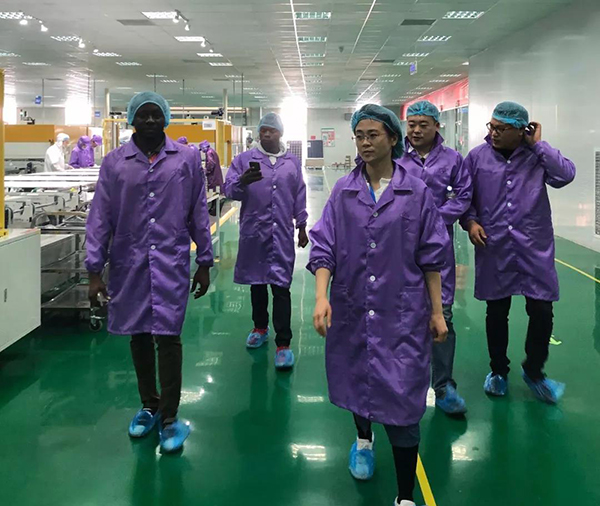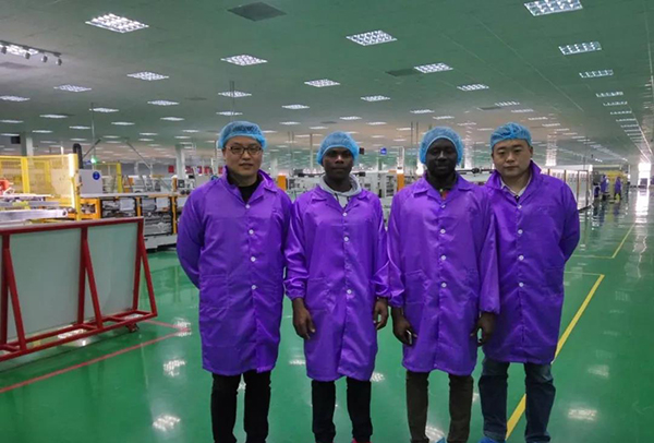 4月25日,我們就迎來了兩位加納的客人,我們這兩位加納客人中文也是非常的溜,還能彪兩句方言呢!在愉悅的氣氛當中,我們業(yè)務部李經(jīng)理,陪同我們遠道而來的加納的客人,首先參觀了廠區(qū)的展廳,了解了公司的成立、發(fā)展以及未來的發(fā)展方向,觀摩了產(chǎn)品展示區(qū)的組件產(chǎn)品以及微電站。緊接著,又來到了車間,李經(jīng)理系統(tǒng)詳細的給加納客人介紹了我們的復合型生產(chǎn)線的特點及優(yōu)勢,加納客人也饒有興致地詢問了很多問題。