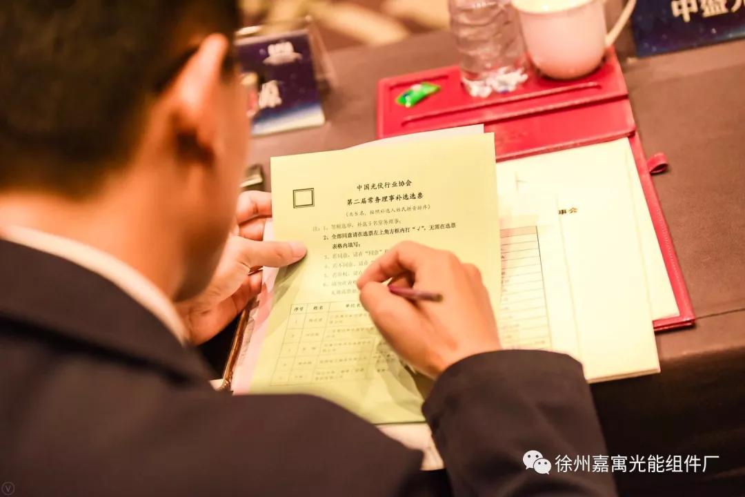 徐州嘉寓光能科技有限公司總經(jīng)理陳志榮受邀出席本次盛會。會上,補選了中國光伏行業(yè)協(xié)會第二屆理事、常務(wù)理事。陳志榮總經(jīng)理榮升第二屆理事。
