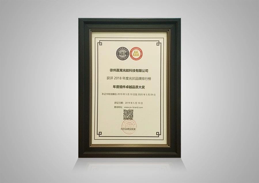 2019年5月10日,由光伏品牌實(shí)驗(yàn)室(PVBL)主辦的”PVBL2018年度中國(guó)光伏品牌排行榜”頒獎(jiǎng)典禮中,嘉寓光能榮獲“年度組件卓越品質(zhì)大獎(jiǎng)”。嘉寓憑借過(guò)硬的產(chǎn)品質(zhì)量,良好的用戶口碑,*質(zhì)的系統(tǒng)服務(wù),再次獲得業(yè)界的認(rèn)可。
