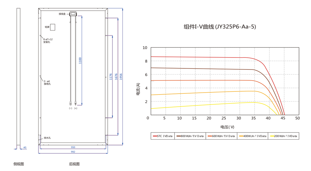 標(biāo)準(zhǔn)測試條件:大氣質(zhì)量AM1.5,輻照度1000W/ ㎡,電池溫度25℃. |