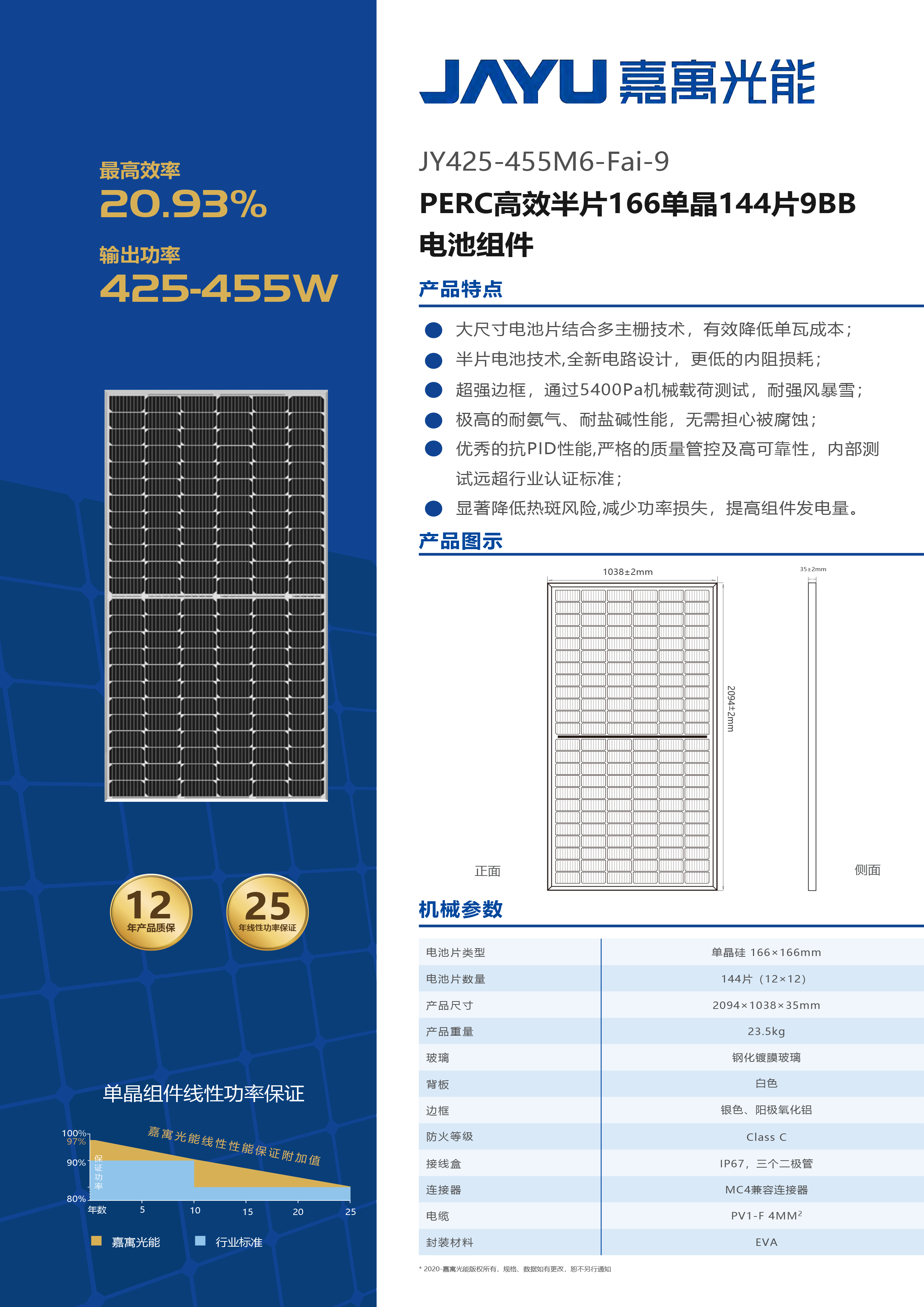 產(chǎn)品名稱:PERC高效半片166單晶144片9柵電池組件更新時間:2021-1-22 10:15:40 |